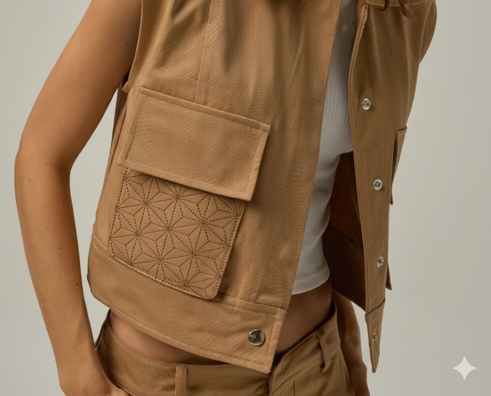 Bordado geométrico para prendas.